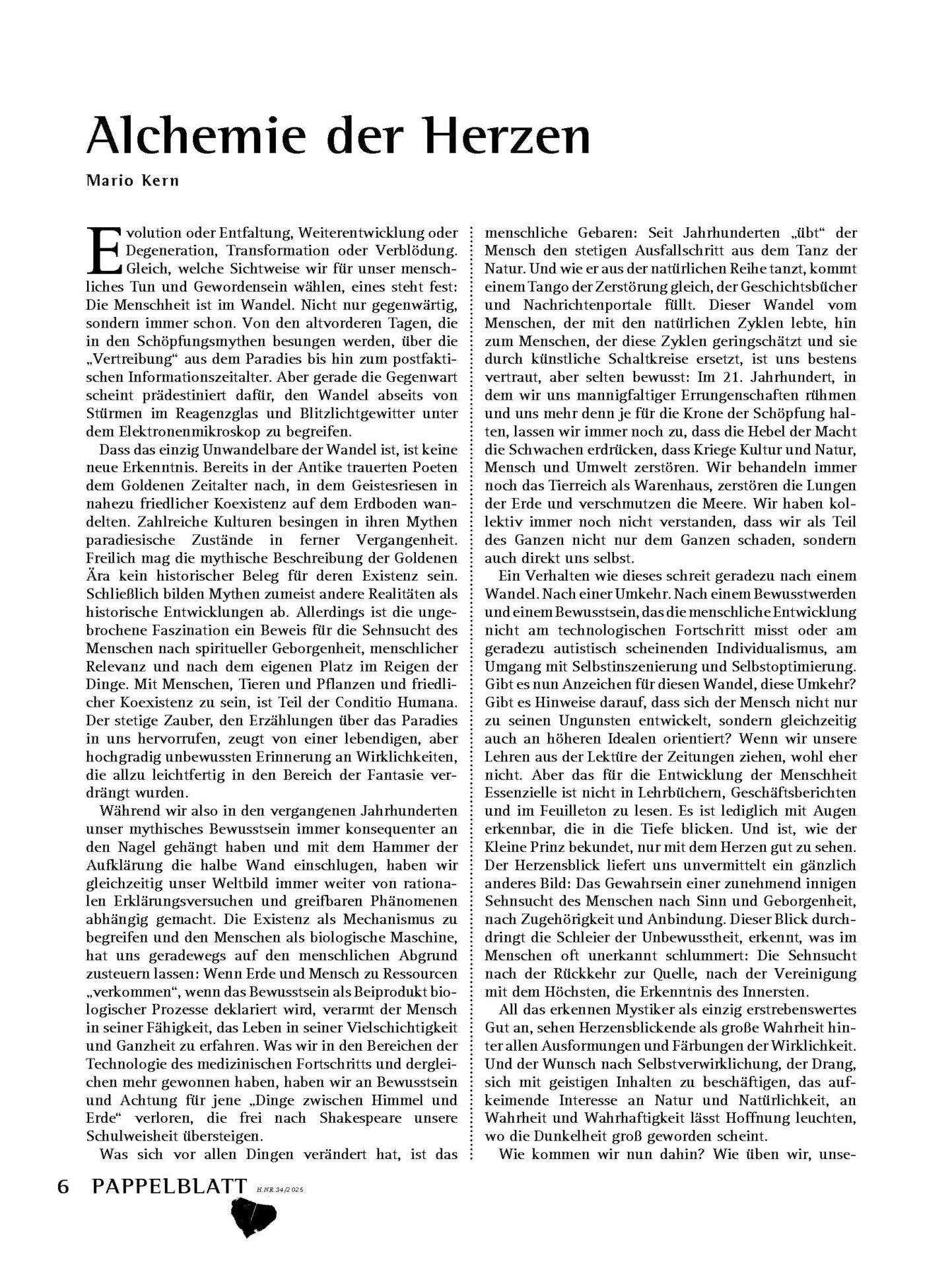 „Alchemie der Herzen“, erschienen im Pappelblatt 34 (2025):